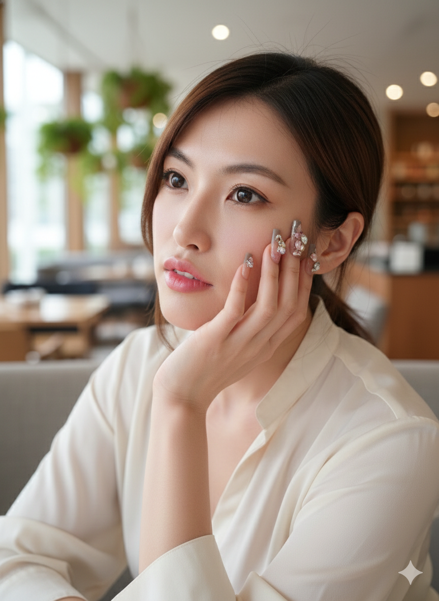 For more than two decades, this Japanese nail artist has been quietly perfecting the art of handmade nails. Inspired by precision, patience, and the beauty of intentional design, each set is created entirely by hand from start to finish. What you see in each photograph is the exact set you will receive, carrying the marks of true craftsmanship and years of experience. These nails are not made to follow trends, but to exist as wearable art, individual, expressive, and undeniably one of a kind.