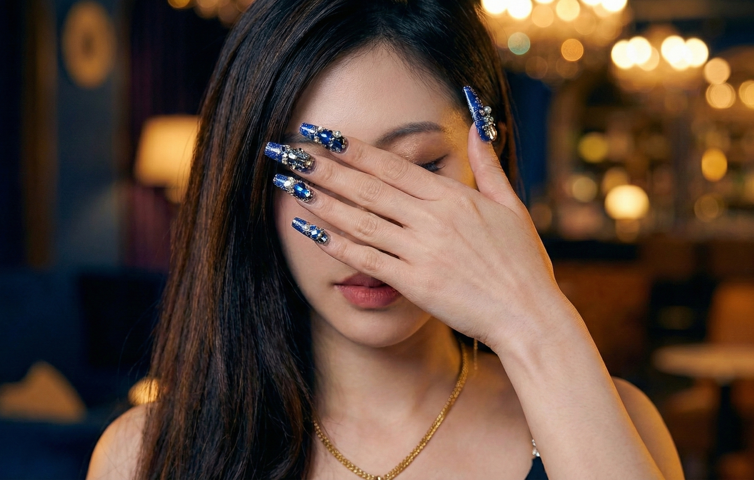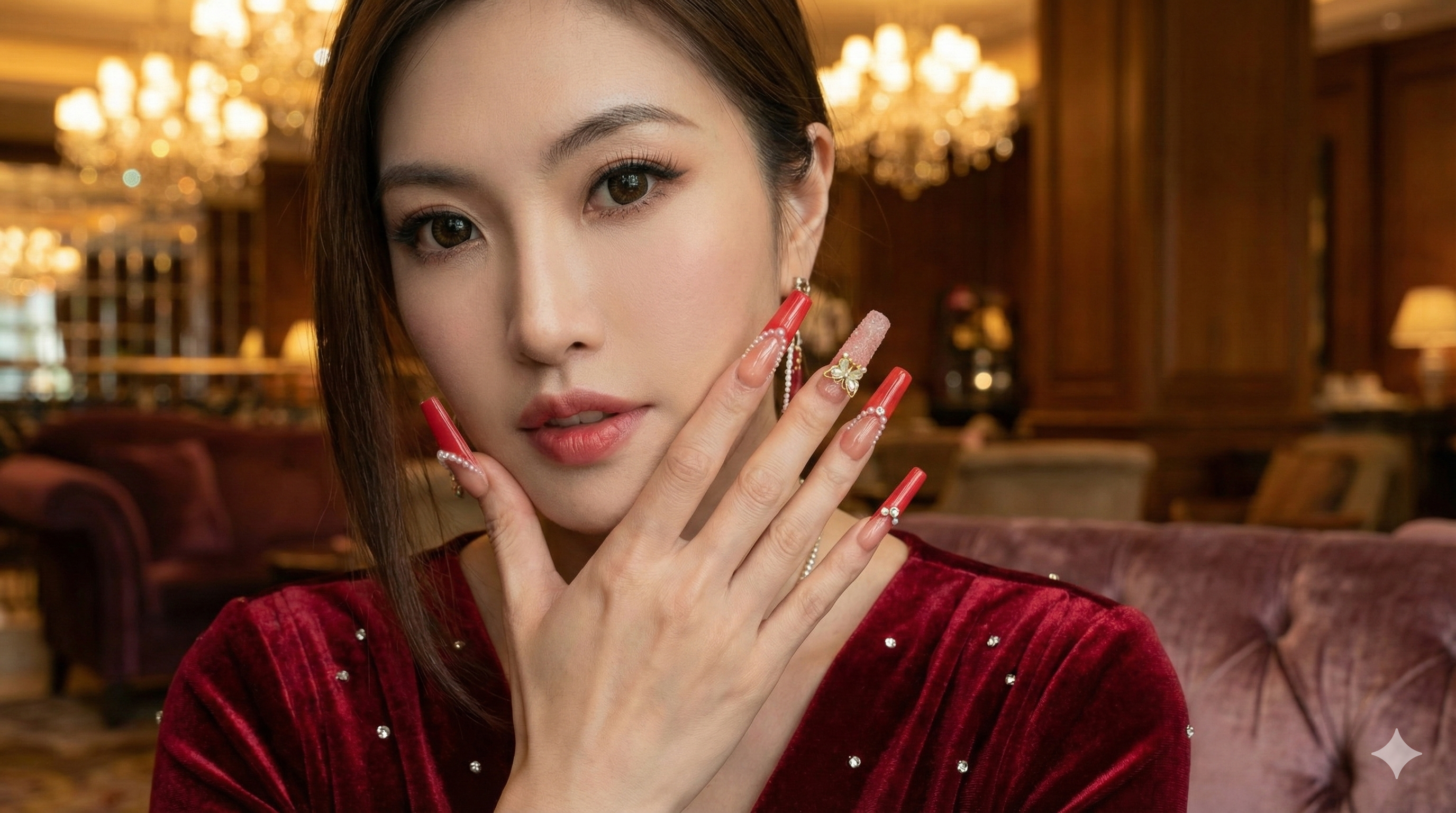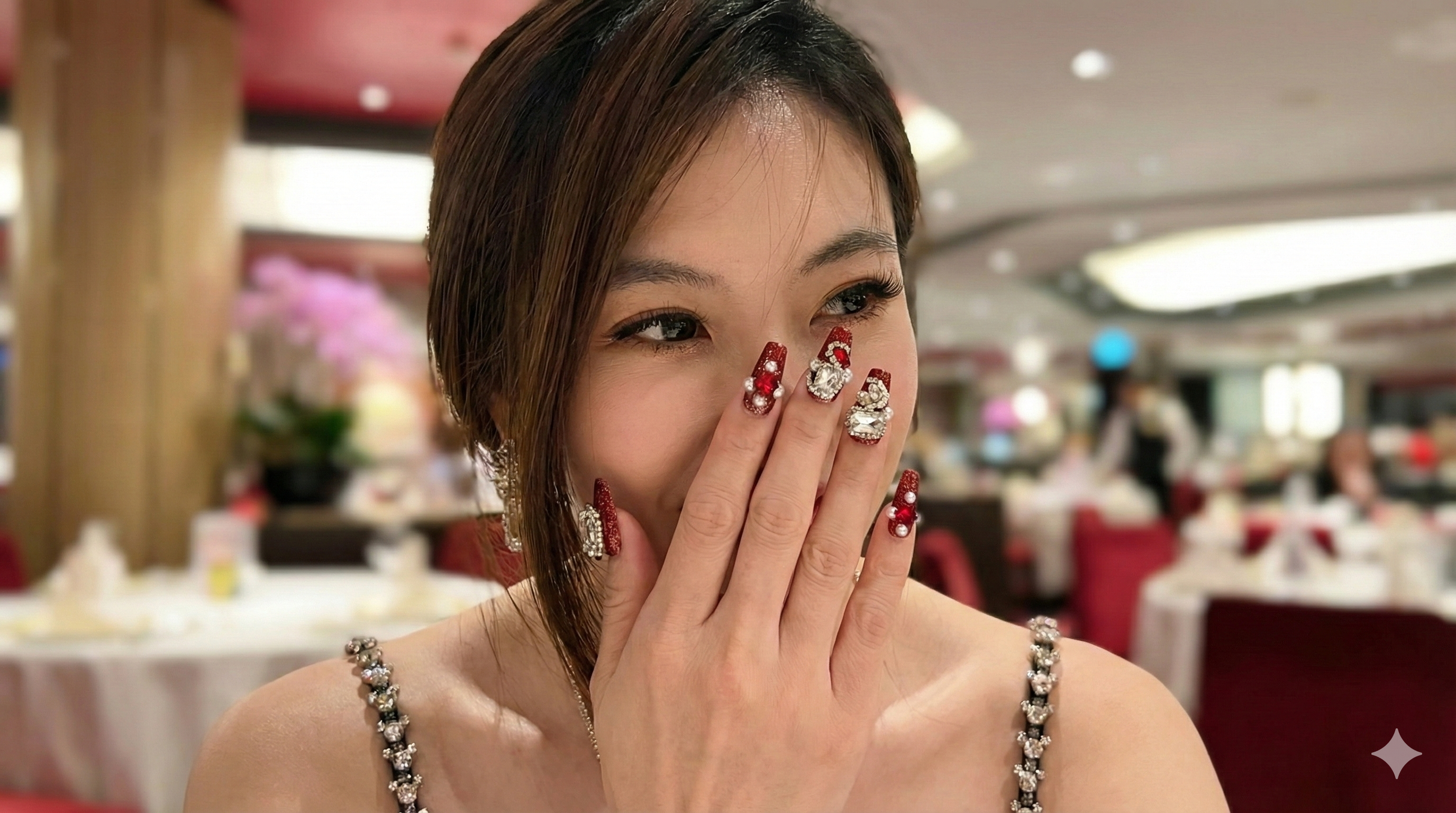 "These nails are stunning! The finish is smooth, the gems are well-secured, and the overall look is very elegant. They were simple to apply and lasted longer than expected."
